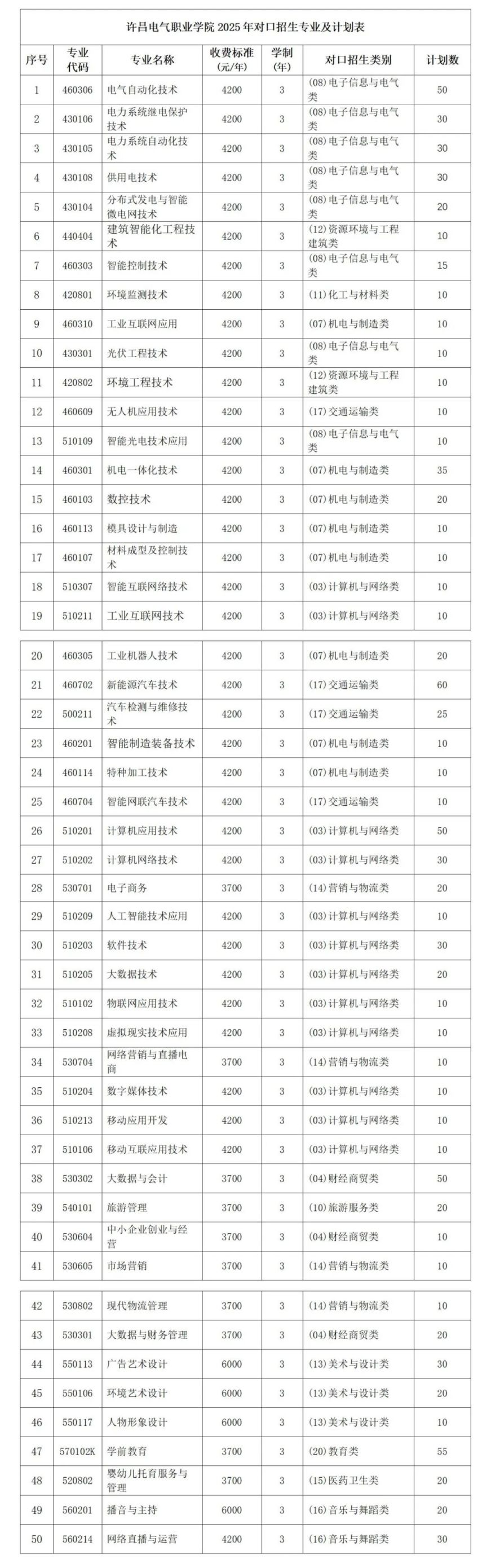 1. 查阅2025年许昌电气职业学院招生简章,了解招生专业、招生计划、录取规则等信息。