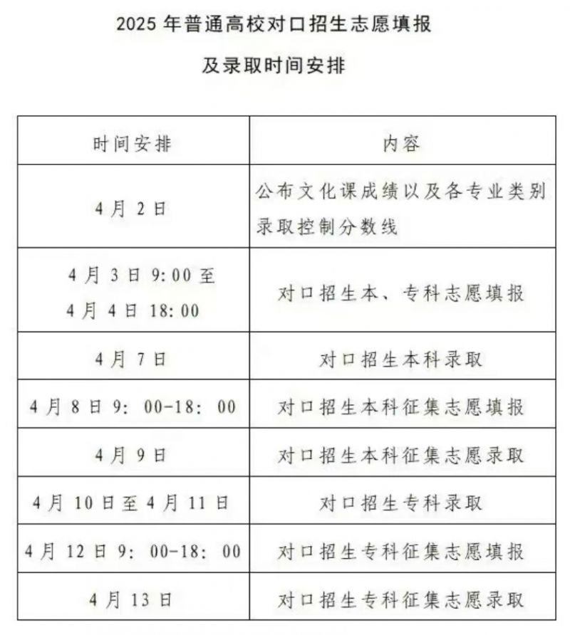 许昌电气职业学院2025年对口升学考生志愿填报须知 我省2025年普通高校专升本及对口招生考试已安全平稳结束,按照省教育厅有关要求,结合省教育考试院工作安排,现将有关事宜告知如下: 一、成绩查询 4月2日,公布普通类专升本及对口招生文化课成绩。考生可通过以下方式查询:一是登录河南省教育考试院网站(https://www.haeea.cn)或河南招生考试信息网(https://www.heao.com.cn)查询;二是绑定河南省教育考试院微信公众号,通过实名验证后可及时获取系统推送的成绩信息。 快速查询入口:点击进入 二、志愿填报 4月3日9:00至4月4日18:00,进行对口招生网上志愿填报。 对口招生实行平行志愿,本科设6个平行的院校志愿,专科设12个平行的院校志愿;每个高校设4个专业志愿和是否同意专业调剂。 考生填报志愿前应认真阅读有关高校招生章程、网上填报志愿说明,依据省教育考试院公布的招生专业计划,在规定时间内按要求和程序完成志愿填报并保存,逾期不予补报。在规定的截止时间前可以进行不超过两次的修改,以网上最后一次保存的志愿为准,填报时间截止后将无法更改。  三、录取 4月7日至4月9日进行对口招生本科录取。 4月10日至4月13日进行对口招生专科录取。 录取工作由省教育考试院组织实施,实行平行志愿投档,投档规则为“分数优先,遵循志愿,一轮投档”,即:按照该专业全体上线考生总成绩从高分到低分排定位次,然后按位次优先的原则,根据考生平行志愿的自然顺序从前到后进行检索,一经检索到计划未满额的学校,即向该校投档。 对口招生总成绩相同的考生,中职类专业依次按语文·英语(合卷)、数学成绩排序;教育类专业依次按语文(幼师语文)、数学(幼师数学)成绩排序。 四、征集志愿填报及录取 录取时对生源不足的学校,公开征集志愿。凡成绩达到相应专业控制分数线的对口招生本、专科考生,如未被录取(档案状态为“自由可投”),届时可填报征集志愿,征集志愿按平行志愿规则投档录取。 五、录取查询 考生可使用本人的账号和密码登录“河南省普通高校招生考生服务平台”,查询本人档案的运转状态;也可关注河南省教育考试院微信公众号,绑定个人相关信息,接收本人录取信息推送;也可凭本人身份证或准考证到当地县(市、区)招生考试机构服务大厅进行查询。 六、咨询服务 省教育考试院将通过多种渠道为考生提供咨询服务。考生可通过河南省教育考试院网站“咨询留言”栏目、河南省教育考试院微信公众号“微服务”中的“咨询留言”模块、“招考豫言”微信公众号“信息服务”中的“咨询留言”模块进行线上咨询,也可拨打全省招生考试语音服务热线0371-55610639进行咨询。 许昌电气职业学院咨询电话:0374-3189962、3189963 七、2025年普通高校对口招生志愿填报及录取时间安排  举报 举报