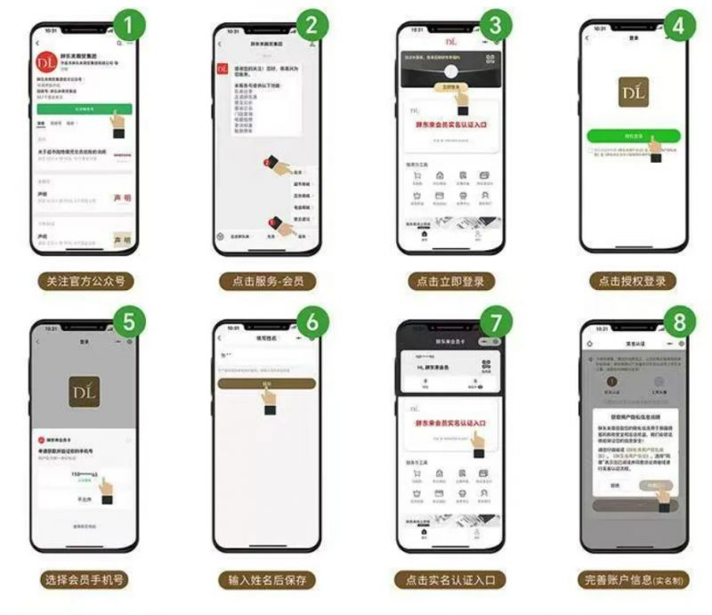 手机微信搜索“胖东来商贸集团”官方公众号--右下角“服务”--“会员”进入“胖东来会员卡”小程序--“立即登录”,认真阅读并同意《胖东来用户协议》《胖东来用户隐私政策》《胖东来会员卡小程序隐私保护指引》--确认“授权登录”--选择会员手机号登陆--输入会员真实姓名点击保存--“胖东来会员实名认证入口”认真阅读并同意《胖东来用户协议》《胖东来用户隐私政策》后进入会员实名认证流程。