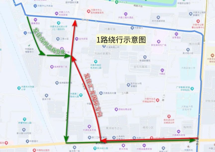 "许昌1路公交临时绕行路线安排"