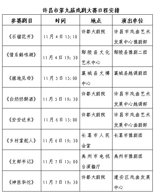 2025许昌第九届戏剧大赛即将到来,以下是可能的一张演出节目单预览,请注意这只是一个示例,实际节目单可能会有所不同: