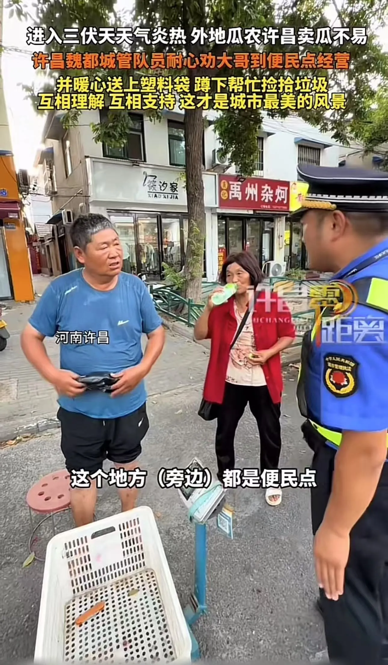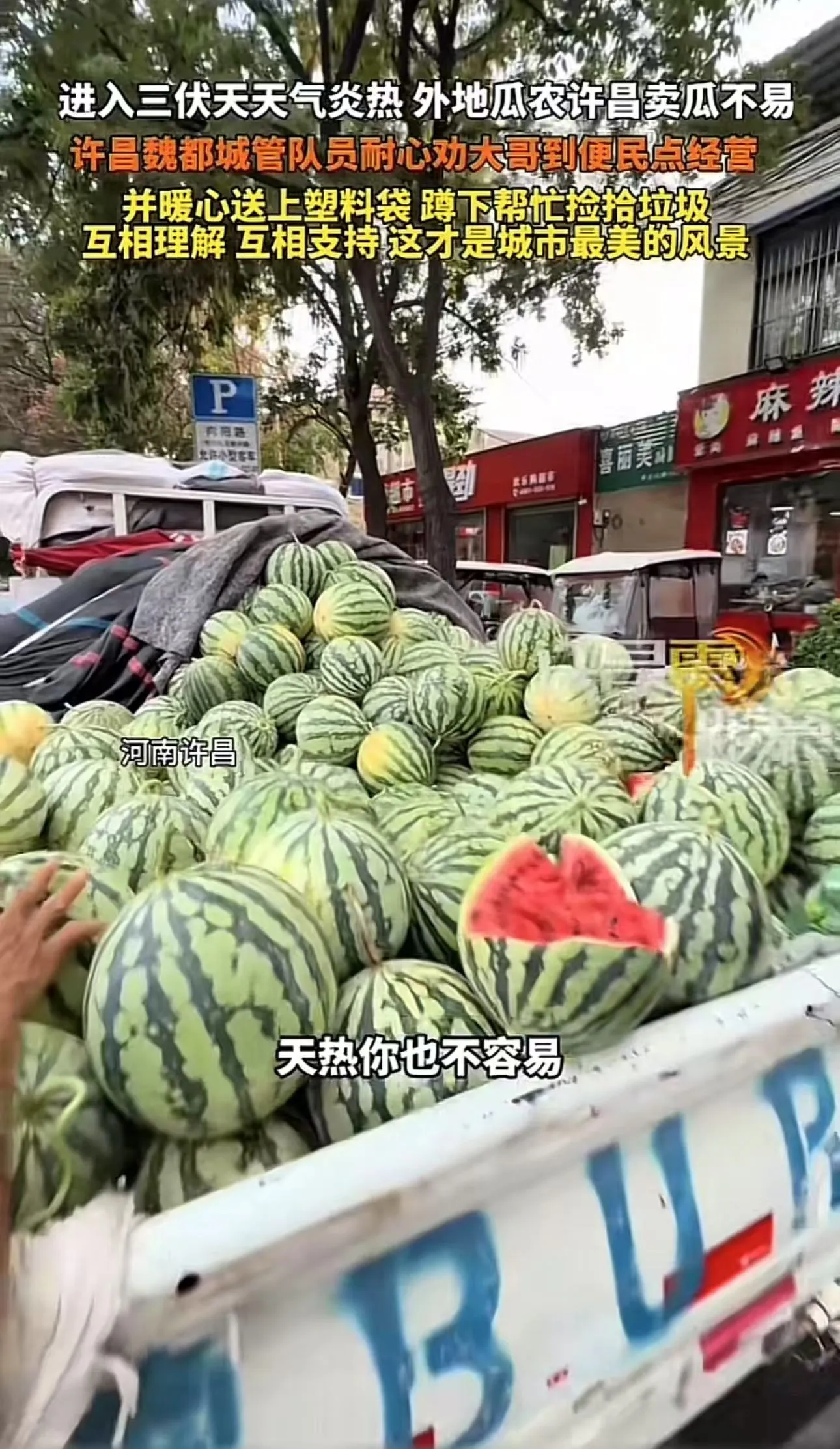 这突如其来的转变,让瓜农一下子愣住了,原来城管不是罚自己,也不是不让自己摆,而是换个地方?
